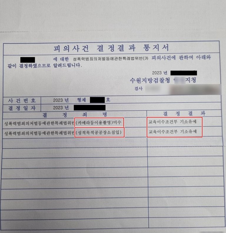 의뢰인은 당초 벌금형의 처분만으로도 충분하다고 하셨으나, 검찰에서는 기소유예의 불기소처분을 하였고, 특히 카메라등이용촬영죄의 경우 미수로 의율하였습니다.