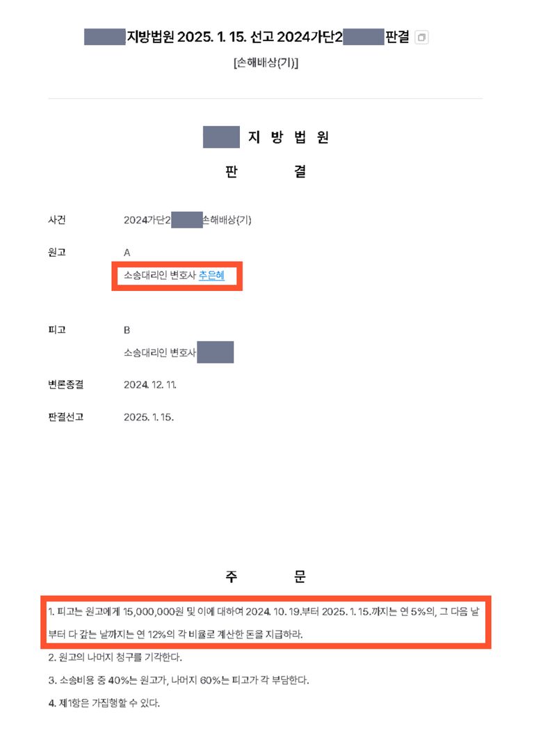 이러한 법리적 판단을 바탕으로, 재판부는 피고가 원고에게 위자료 1,500만 원 및 지연손해금을 지급하라고 판결했습니다. 비록 원고가 청구한 금액 전부는 아니었지만, 유부남에게 속아 교제한 미혼 피해자가 당당하게 자신의 권리를 인정받고 정신적 고통에 대한 배상을 받았다는 점에서 매우 의미 있는 승소 사례입니다.