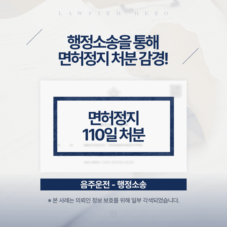 결과 : 행정소송 승소, 벌금 감액 및 면허취소 처분에서 면허정지 110일로 감경