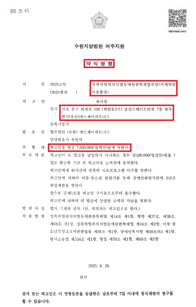 이러한 저의 조력을 바탕으로 A씨는 계획적인 범행인데다가 교복치마를 입은 여성들만 촬영하였음에도 불구하고 약식명령으로 벌금형을 받음으로써 재판까지 나아가지 않고 법적 불이익을 최소화할 수 있었습니다.