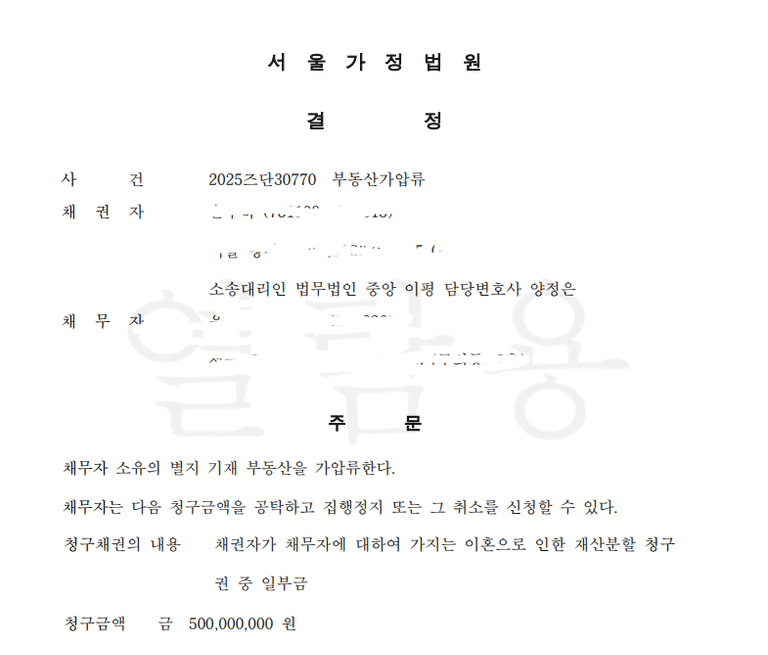 바로 제게 의뢰하여 남편 소유의 부동산에 가압류를 하였습니다.