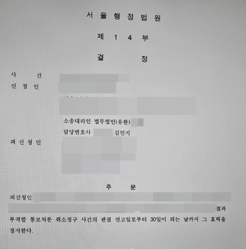 그 결과, 법원은 저의 주장을 모두 받아들여 본안 소송의 판결이 선고될 때까지 처분의 효력을 정지하는 '집행정지 인용' 결정을 내렸습니다!