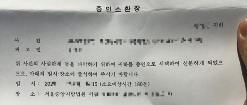 지인의 부탁으로 사실확인서를 써준 적이 있었는데, 얼마 뒤 법원으로부터 ‘증인소환장’을 받고 당황하셨던 경험 있으신가요? 본인은 소송의 당사자도 아니고, 단지 알고 있는 사실을 간단히 확인해 준 것뿐인데 법정에 나와 증언까지 해야 하는 상황이 되면 누구나 부담을 느낄 수밖에 없습니다. 실제로 “반드시 출석해야 하나요?”, “안 나가면 어떤 불이익이 있나요?”라고 문의하시는 분들이 많습니다.