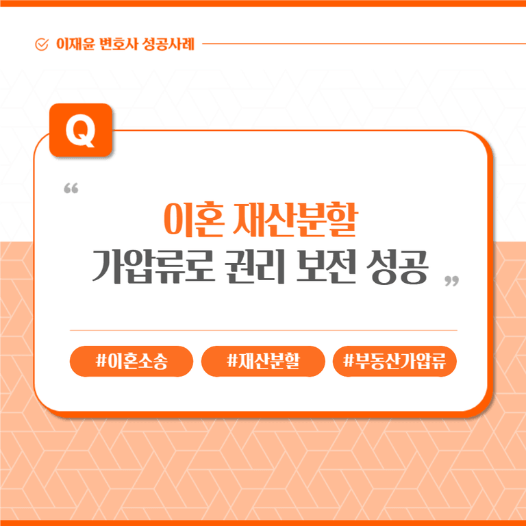 의뢰인은 이혼소송을 진행하며 배우자에 대한 재산분할청구권을 보전하기 위해 새움에 가압류 신청을 의뢰하셨습니다.
