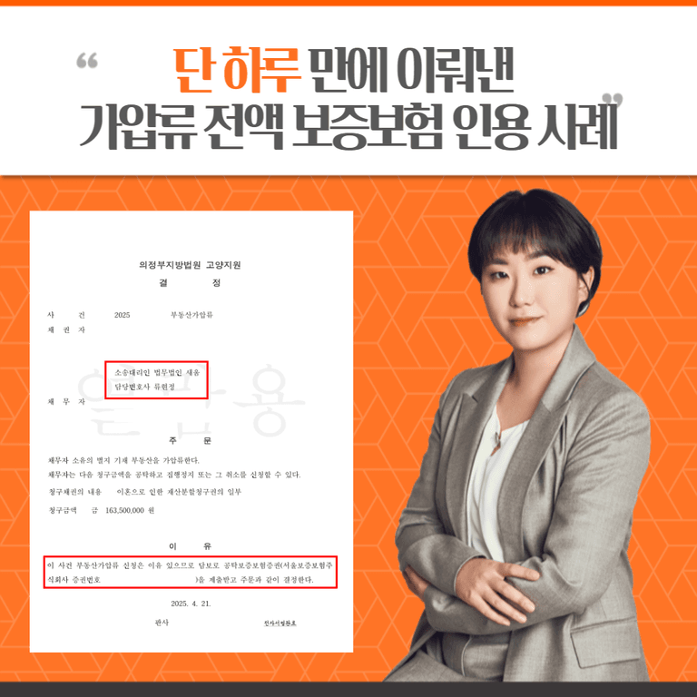 특히 4월 8일 가압류 신청 후 단 하루 만인 4월 9일, 담보 전액에 대해 보증보험으로 담보를 제공할 수 있도록 하는 담보제공명령을 이끌어냈습니다.