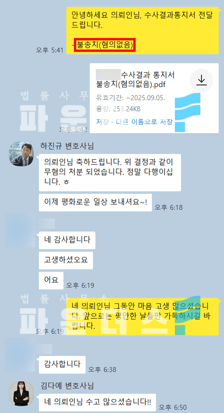 이에 변호인은 수사 초기 단계에서 의뢰인의 억울한 부분을 논리적이고 일관되게 주장해 나가고자 하였고 결과적으로 경찰 단계에서 혐의없음의 결과로 종결할 수 있었습니다.