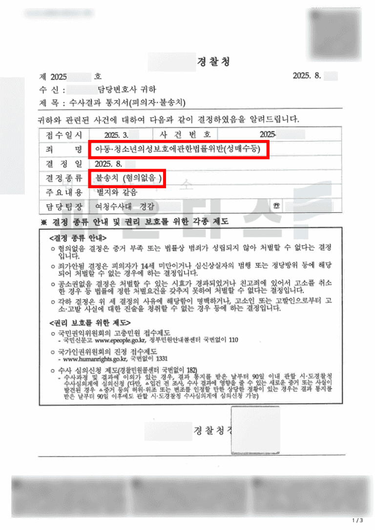 사건의 핵심 키워드: 미성년자 성매매 / 트위터 미성년자 조건만남 / 아청 성매수 / 미성년자 성매매 무혐의 / 미성년자 성매매 성행위 여부 / 미성년자 성범죄 경찰단계 무혐의