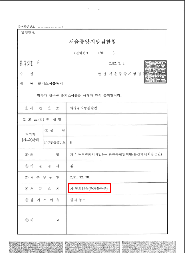 의뢰인의 행위는 그러한 성적인 표현에는 해당하지 않아 보였습니다. 또한, 그동안 제가 받았던 통신매체이용음란죄 불송치처분서와 불기소이유서, 무죄판결문 등을 첨부하여 제 의견의 타당함을 주장하였습니다. 제가 이제까지 통신매체이용음란죄로 수많은 무혐의 내지 무죄판결을 받았기 때문에, 저의 주장은 누가봐도 타당하고 합리적이었습니다.
