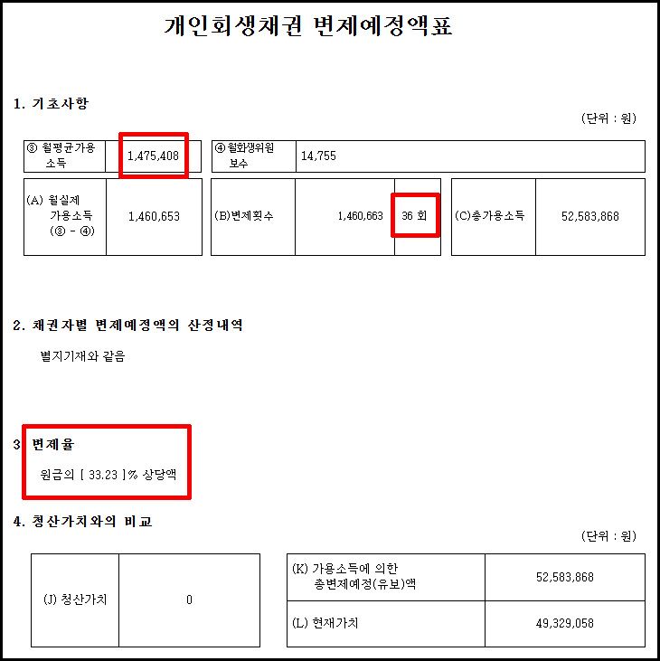결국 추가 생계비 30만 원을 인정해 주었고, 변제율도 원금의 33.23%에 불과한 조건으로 개시결정을 내렸습니다.