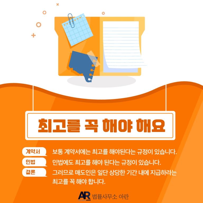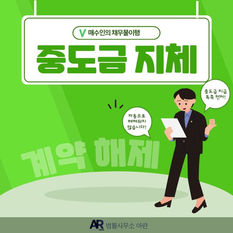따라서 매수인이 중도금을 지급하지 않을 경우, 매도인은 먼저 매수인에게 '상당한 기간 내에 중도금을 지급하라'라고 (서면으로) 독촉을 하여야 하고, 그 기간 내에 매수인이 중도금을 지급하지 않아야만 계약 해제가 가능합니다.