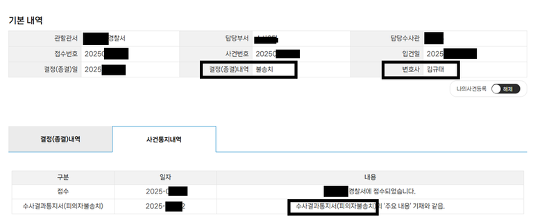 의뢰인이 저를 찾아왔을 당시, 이미 경찰 수사는 고소인 조사를 마치고 의뢰인이 했던 선행 고소건에 대한 공람 확인까지 어느 정도 진행되고 있는 상태였습니다.
