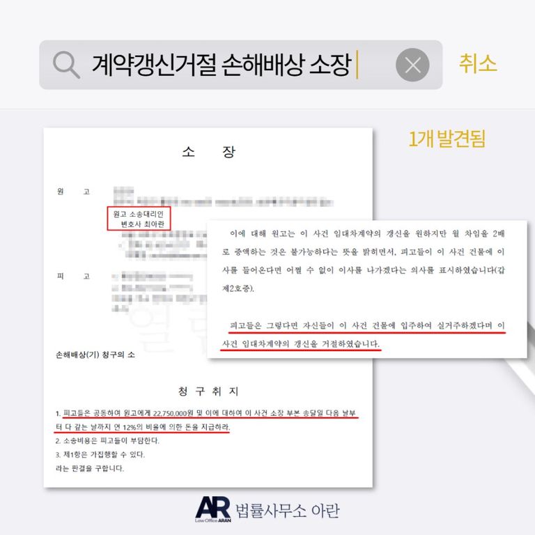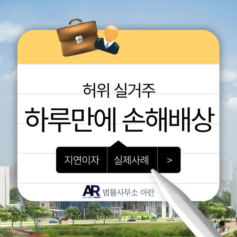 오늘은 법률사무소 아란에서 실제로 수행한 사례로서 임대인이 실거주하지 않고 제3자에게 임대를 놓은 사건에서, 임차인이 임대인을 상대로 손해배상청구 소송을 제기하여 하루 만에 손해배상을 받아낸 사례를 소개드리겠습니다.