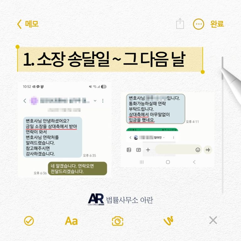 집주인에게 소장이 송달된 바로 다음 날, 집주인은 부랴부랴 의뢰인에게 전화를 걸며 연락을 취해 왔습니다.