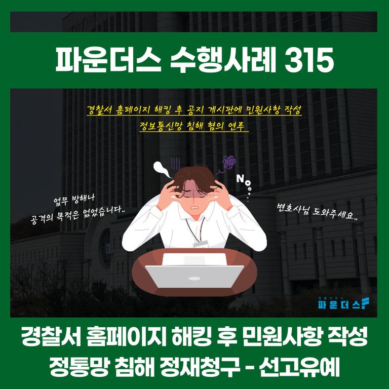 사건의 핵심 키워드: 정보통신망침해 선고유예 / 경찰서 홈페이지 해킹 / 관공서 홈페이지 보안 / 정통망 침해 정식재판청구