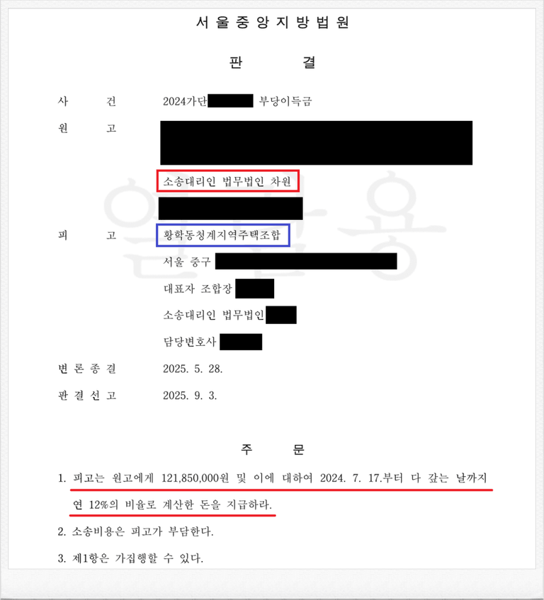 그러나 이후 피고 황학동청계지역주택조합 측의 사업은 계획대로 진행되지 않았고, 이에 의뢰인께서는 분담금 반환을 구하는 민사소송을 정식으로 진행하길 원하셨습니다.