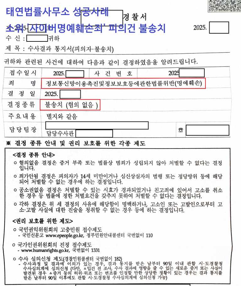 사이버명예훼손죄 고소당했을 때 불송치결정 받기! 불송치결정에는 비밀이 있다?!