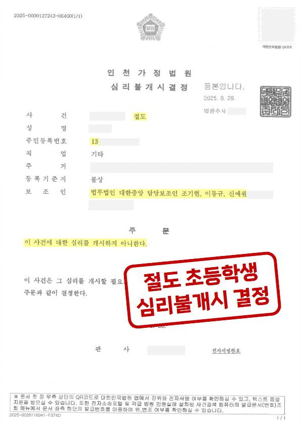 그 결과 재판부는 이동규 변호사의 주장을 모두 인정하고 심리불개시 결정을 내려, 사건을 신속히 종결하도록 하였습니다.