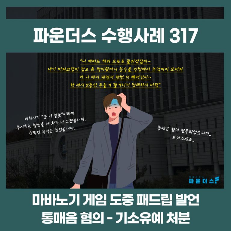 사건의 핵심 키워드: 게임 통매음 패드립 / 통매음 패드립 발언 / 게임 통매음 기소유예