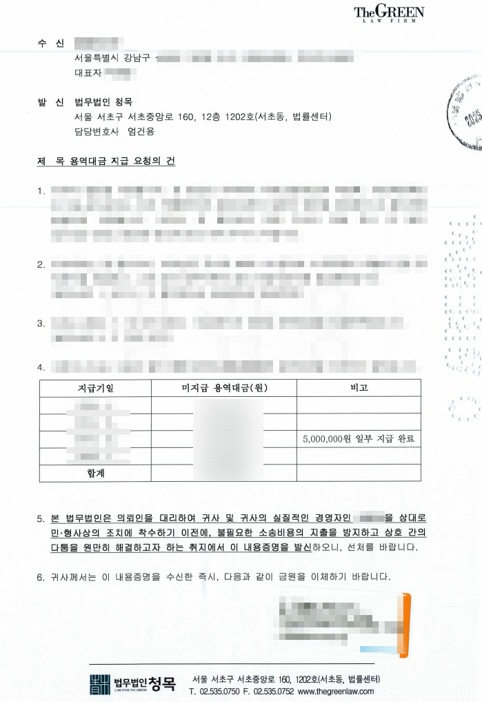 거래처에 대한 미수채권 회수를 위한 내용증명 조력