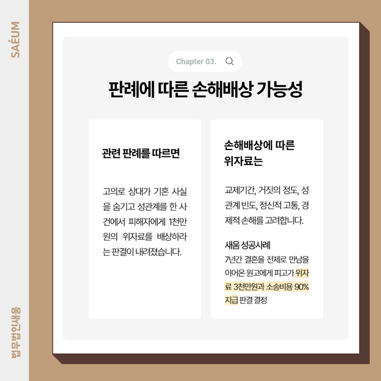 새움은 7년간 교제한 증거와 결혼을 전제로 한 관계였음을 입증하고, B씨가 철저히 유부남임을 숨긴 채 성관계를 이어간 점을 객관적으로 증명했습니다.