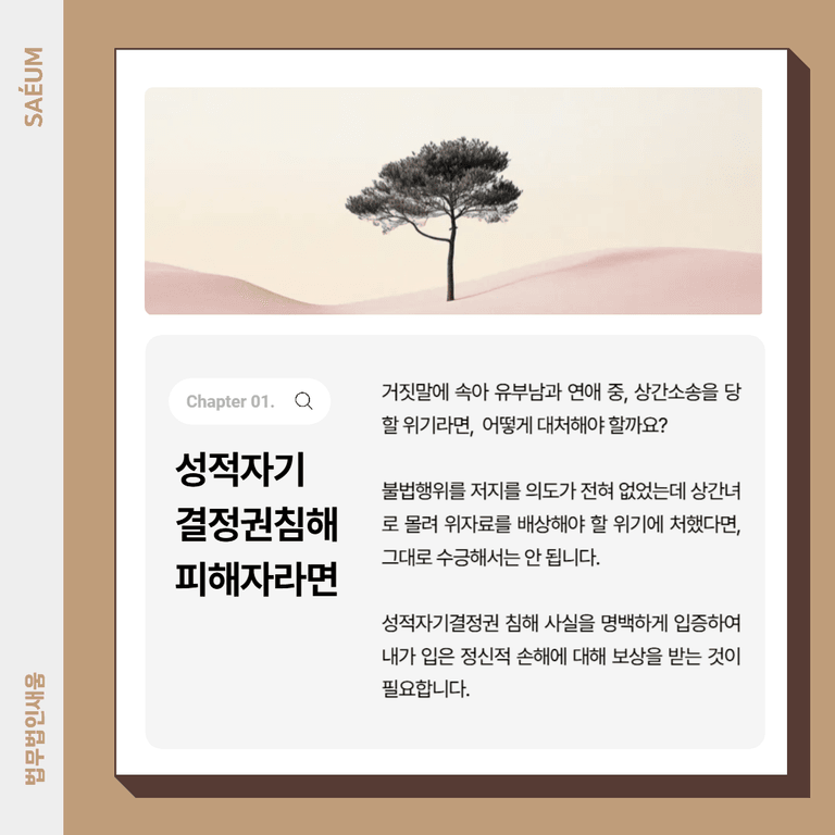 C씨는 억울하게 상간녀로 몰려 손해배상 청구 소송을 당했습니다. 교제하던 D씨가 유부남이라는 사실을 전혀 몰랐다는 점을 입증하기 위해 법무법인 새움을 찾아 도움을 요청했습니다.