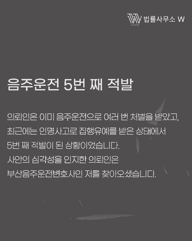 의뢰인은 부산에 거주하는 남성이었습니다. 이전에도 음주운전으로 여러 차례 처벌을 받았고, 최근에는 인명사고까지 발생해 집행유예를 선고받은 상태였습니다. 그런 가운데 다시 음주운전으로 적발된 상황이었습니다.