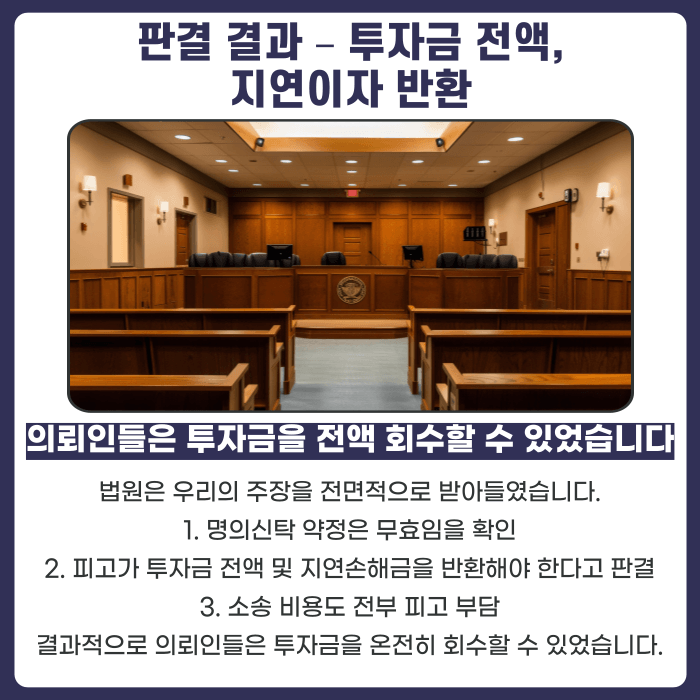 결국 의뢰인들은 투자금을 모두 돌려받을 수 있었습니다.