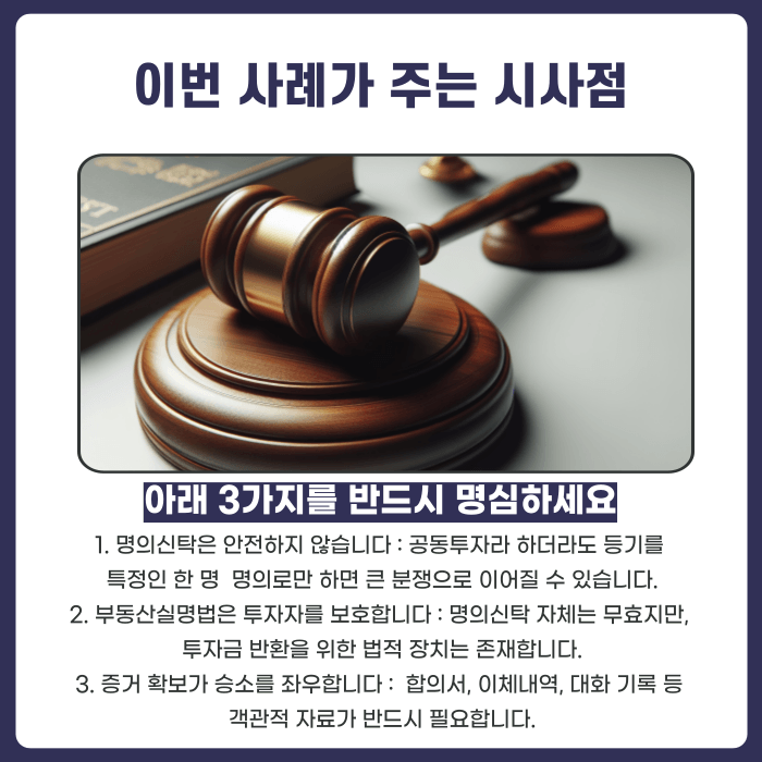 투자금 보호 장치가 있다: 명의신탁은 무효이지만, 투자금을 돌려받을 수 있는 법적 수단이 마련돼 있습니다.