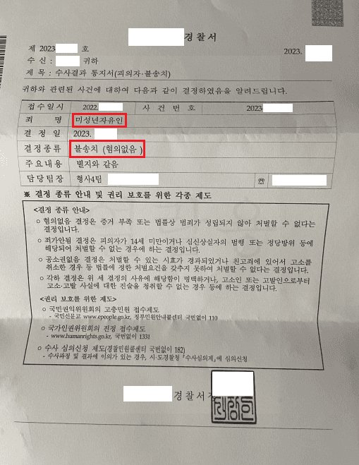 수사단계부터 바로 수임 하여 무혐의 불송치 결정을 받으면서,