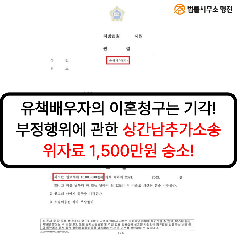 유책배우자의 이혼청구 또한 원하는대로 기각, 전부승소하였습니다.