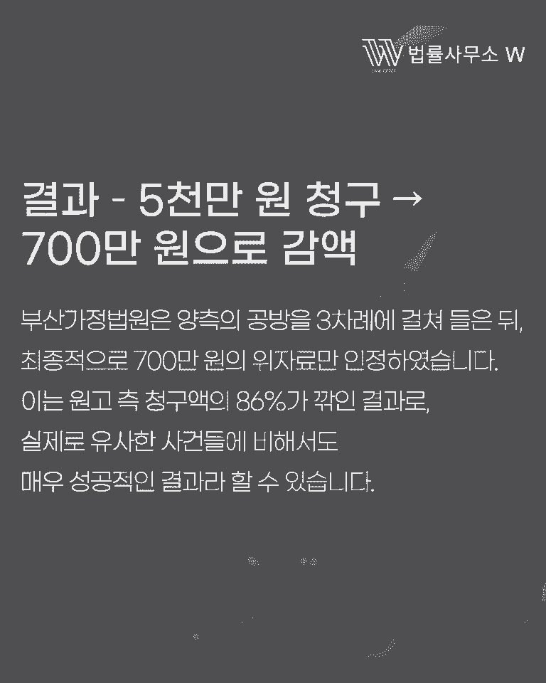 부산가정법원에서는 세 차례의 변론기일을 거쳐 이 사건을 심리하였고, 최종적으로는 5,000만 원 중 700만 원만을 위자료로 인정하는 판결을 선고하였습니다.