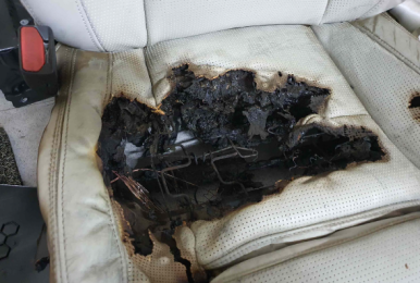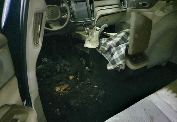 차량 운전석 시트 밑 보조배터리에서 화재 발생