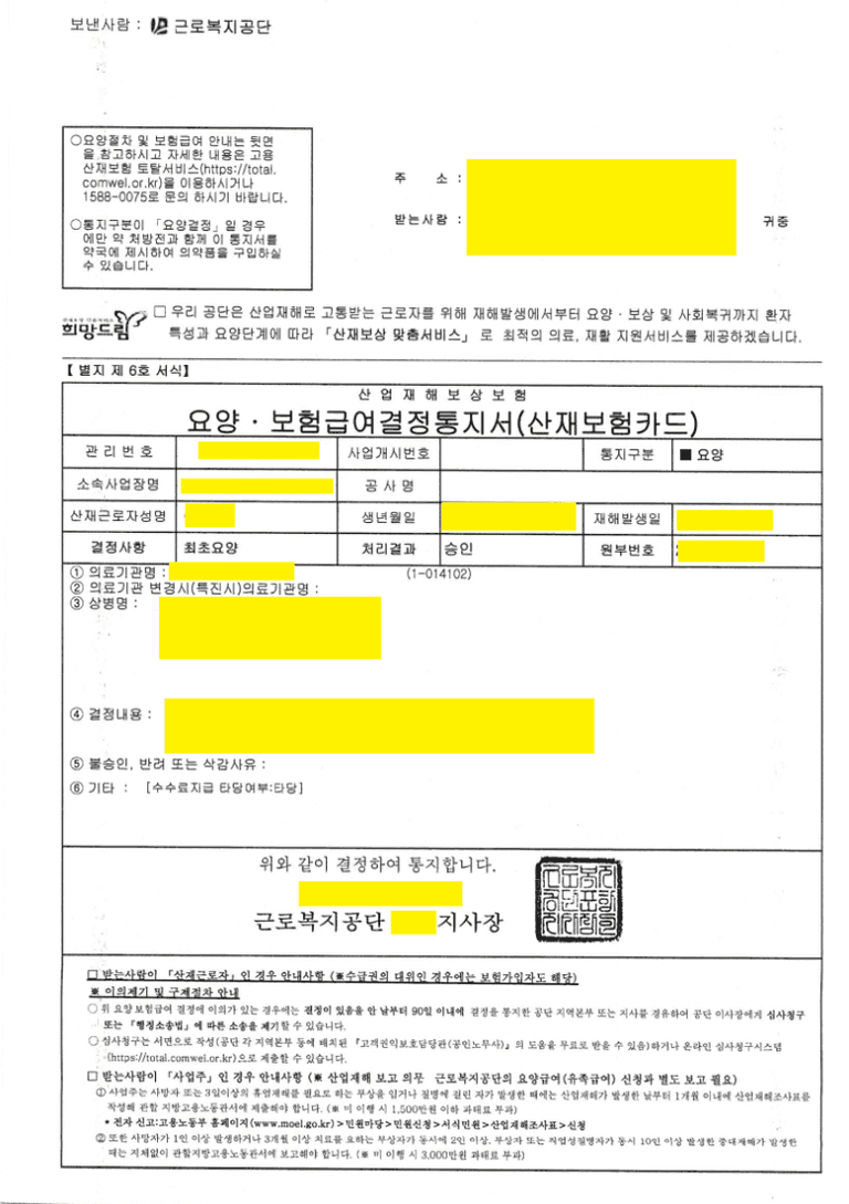 산업재해보상보험법 제37조는 업무상 재해를 아래와 같이 구분합니다.