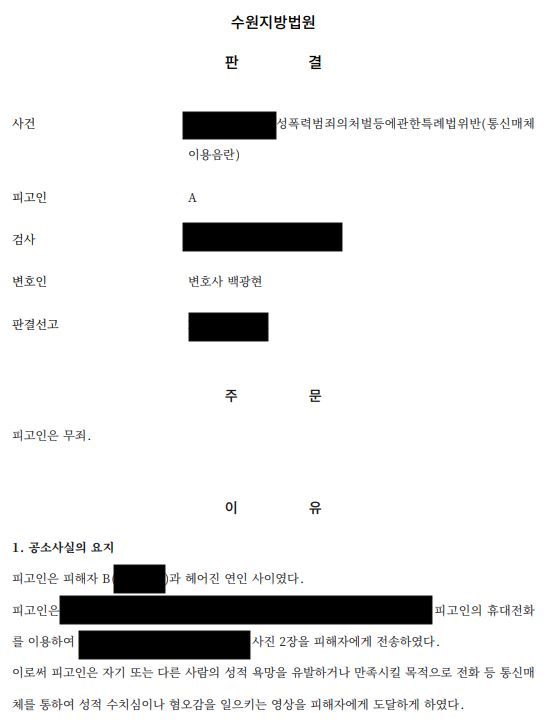 다행히 법원은 본 변호인의 변소에 따라 의뢰인에게 무죄를 선고하였습니다.