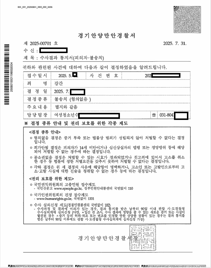 의뢰인께서는 여성과 합의하에 성관계를 하였으나 여성이 태도를 바꾸어 강간을 주장하였던 사건입니다. 합의된 관계였음에도 불구하고 나중에 태도를 바꾸는 사건들이 종종있는데요. 이 경우 전후의 정황, 연락자료들이 굉장히 중요합니다. 강간 피해자로 볼 수 없는 언행들이 많아야 혐의 없음을 입증하기 용이합니다. 물론 성관계시의 자료도 있으면 좋지만 보통 은밀한 장소에서 이루어지는 성관계의 특성상 그러한 자료가 있는 경우는 드뭅니다. 이 사건에서도 다행히 불송치 결정을 받을 수 있었습니다.