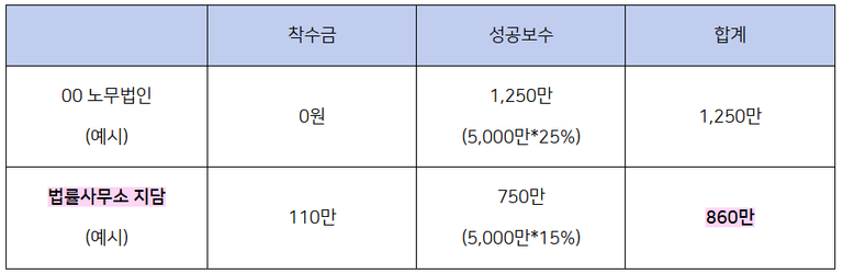 법률사무소 지담은 합리적인 착수금과 성공보수를 제안하였는데요.