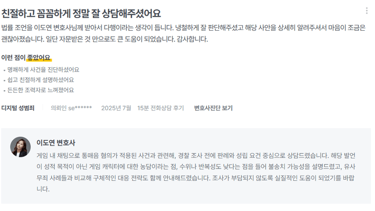 특히 성범죄 사건은 피해자와의 합의가 쉽지 않기 때문에, 여성 피해자와 합의 절차를 원만히 이어나갈 수 있는 능력이 중요합니다.