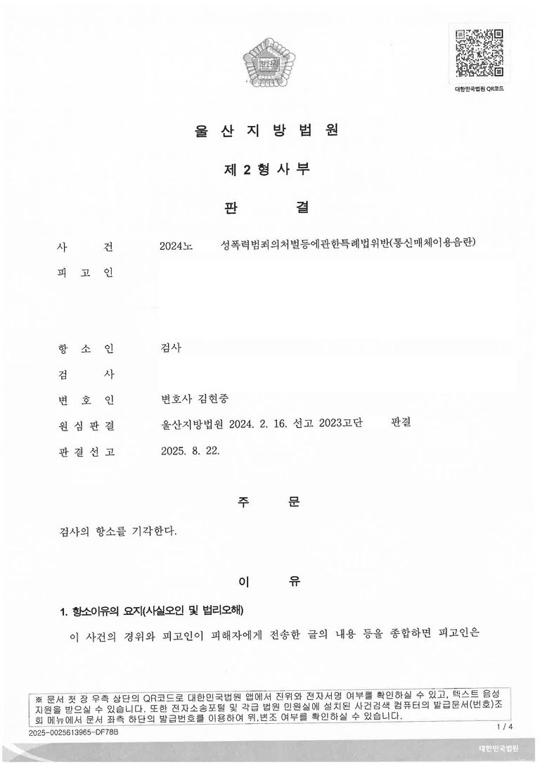 (당시 피고인은 군인 이었고, 군경찰에서 조사를 받고 군검찰을 통해 약식기소 되었습니다. 이후 전역하여 군사법원이 아닌 울산으로 이송되어 1심 재판이 시작 되었습니다.)