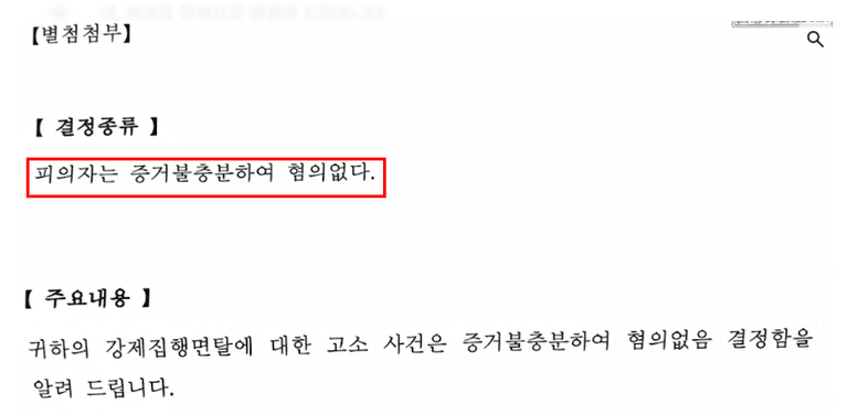○ 결론 : 불송치 결정(무혐의)