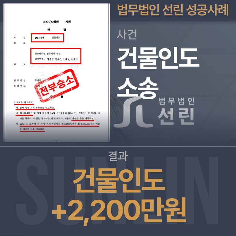 결국 A씨는 법무법인 선린을 통해 건물인도 및 연체 차임 청구 소송을 제기하게 되었습니다.