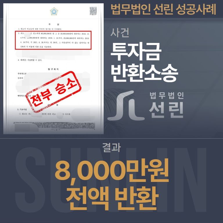 절차 : 투자금반환소송 → 결과 : ‘8,000만원’ 반환