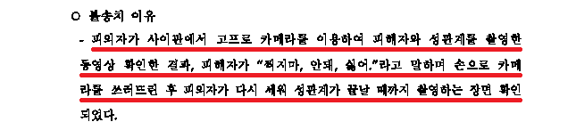 이러한 저의 조력을 바탕으로 A씨는 성관계 모습을 촬영하기 위해 고프로를 설치할 때 B씨가 "아 찍지마, 안돼, 싫어."라고 말하며 고프로를 쓰러뜨려 의사에 반한 촬영으로 판단할 가능성이 매우 높았음에도 불구하고 총 6회에 걸친 촬영 모두 '불송치(혐의없음)' 결정을 받음으로써 억울한 누명에서 벗어날 수 있었습니다.