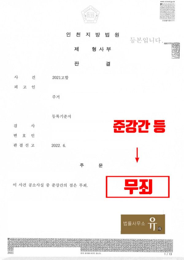 📢[무죄판결 대표사례]