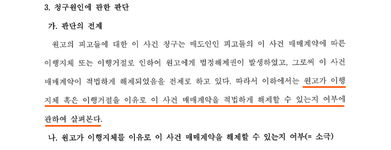 이에 원고는 중도금과 잔금 99억 원을 내지 않기 위해,