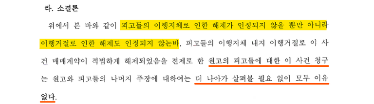 1. 원고가 선이행의무인 중도금을 지급하지 않은 상태에서 계약해제를 주장하는 것은 부당하고,
