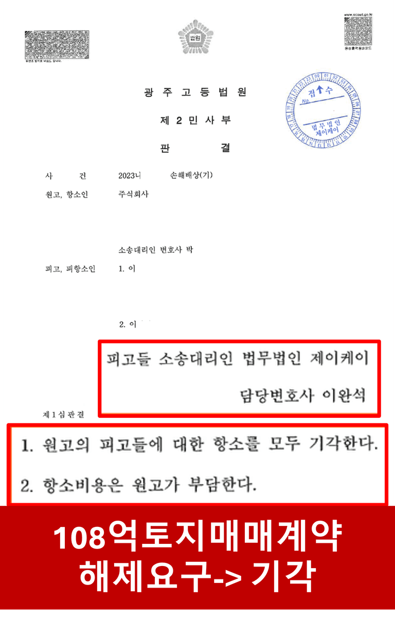 오늘은 민사 항소사건(108억 토지매매계약 일방적 해제요구)에 대해 말씀드리려고 합니다.