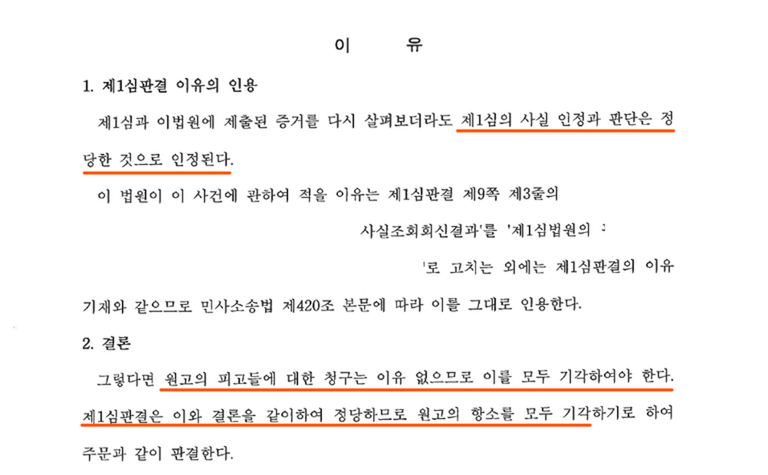 [1심 승소판결문 중 판결이유]