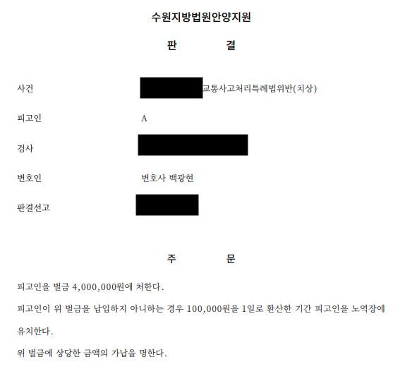 그러나 다행이 법원은 피해자들이 치료비를 모두 지급받고도 일부 피해자와 합의가 이루어진 점 등을 고려하여 의뢰인에게 벌금형을 선고하였습니다.