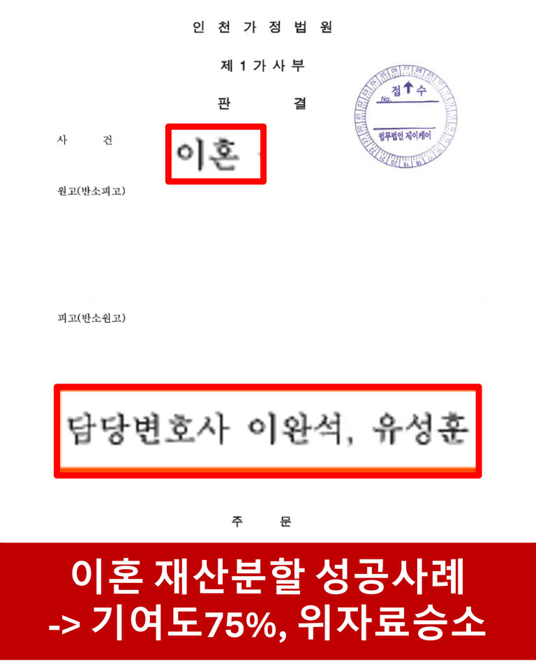 오늘은 이혼 재산분할 (기여도 75% 인정) 및 위자료 승소사례에 대해 말씀드리려고 합니다.