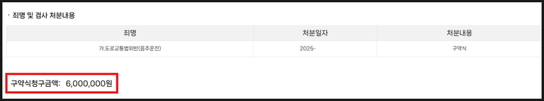 검사는 A의 음주운전 전과에도 불구하고, 구약식(벌금형) 600만 원이라는 처분을 하였습니다